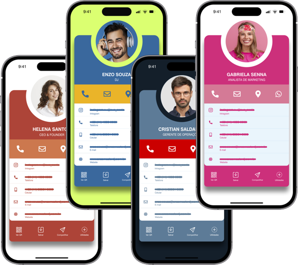 O cartão de visita da QR 4.0 é um cartão de visita digital 100% editável na plataforma online da QR 4.0. É o cartão de visita digital mais completo e sofisticado do mercado com muitos recursos e funcionalidades.